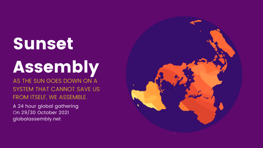 Beyond the sunset, we aim to hold a Sunrise Assembly after COP, hopefully joined by many new collaborators, focusing on how communities can gather locally and trans-locally to make heart-centered decisions, and so take responsibility for the future in a way that can replace a global decision-making system that is paralyzed by its own trauma.