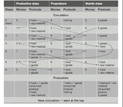 So it's not surprising that the economists of the time, who were called the Physiocrats, actually put the center of their attention to farm labor. When they said, “Where does value come from?” they looked at farming. And they produced what I think was probably the world's first spreadsheet, called the “Tableau Economique,” and this was done by François Quesnay, one of the leaders of this movement. And it was very interesting, because they didn't just say, “Farming is the source of value.” They then really worried about what was happening to that value